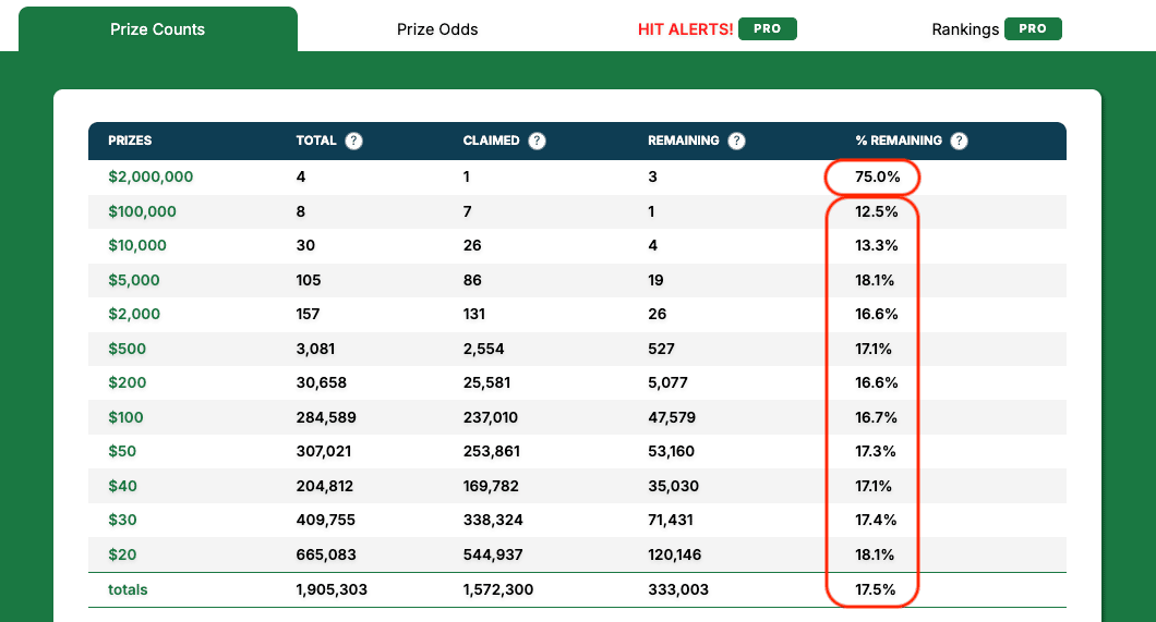 By scanning % prizes remaining, you can sometimes spot these outliers yourself.